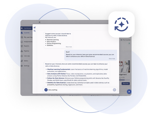 Create, structure, and customize courses in minutes. The LMS AI agent helps streamline setup so your training programs align perfectly with your learning goals.